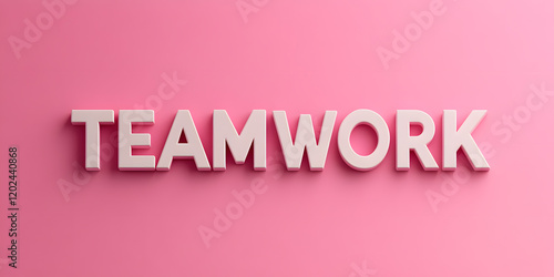Teamwork: The word 'Teamwork' in raised, light-colored letters against a pink background.