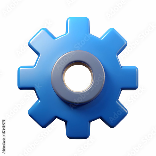 Tech gear icon in 3D clay render with subtle gloss on a clean white minimal and modern background