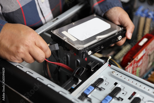 technician man fix or upgrading hard disk on computer