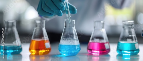 Technician Preparing Chemical Solutions in Laboratory