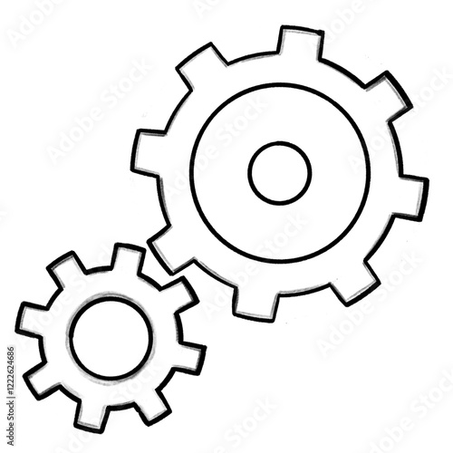 Technology, gear wheel, hand-drawn pencil drawing, illustration, black, transparent background, PNG