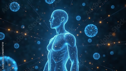 Technology human body side particle scene
