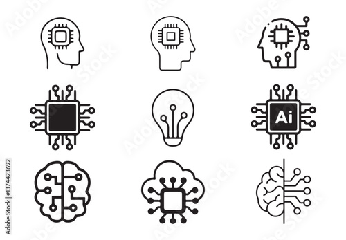 Technology icon set. Artificial Intelligence icons. Ideas inspiration symbol. Vector illustration eps 10
