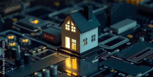 Technology in the smart home with intelligent controls, networking and technization of the home through microelectronics for control, monitoring and security