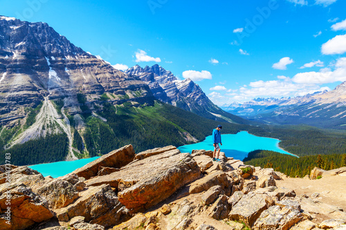 Teen atop Bow Summit Overlooking Peyto Lake in Banff National Park on the Icefields Parkway