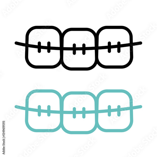 Teeth with braces icons collection