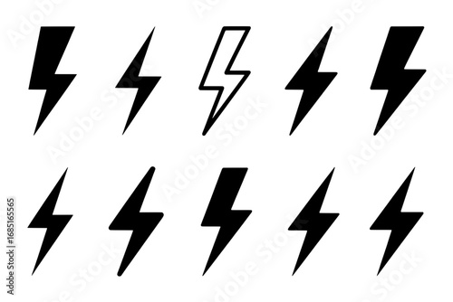 Ten Variations of Black Lightning Bolt Icons: Solid, Outlined, and Subtle Differences in Shape