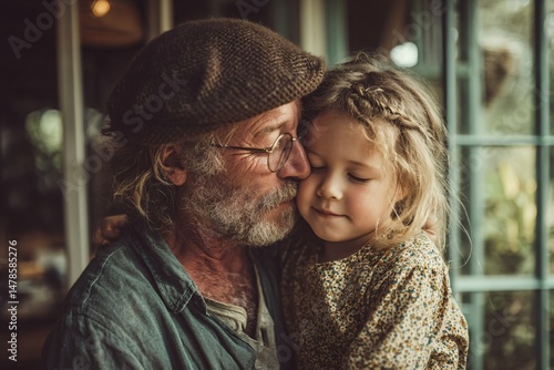 Tender Grandpa and Granddaughter Embrace Loving Family Moment Indoor Portrait