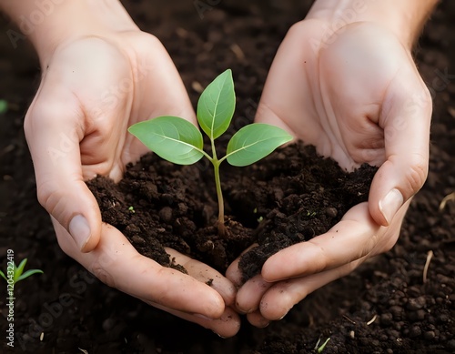 Tender Seedling in Caring Hands: A Serene Nature Image