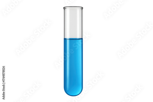 Test tube filled with blue liquid, representing science, chemistry, and research in a laboratory setting with a transparent background