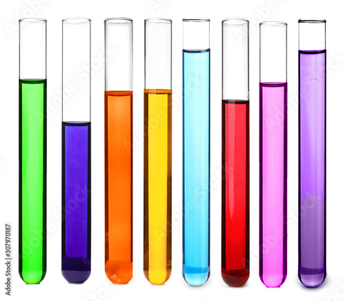Test tube with color sample on white background