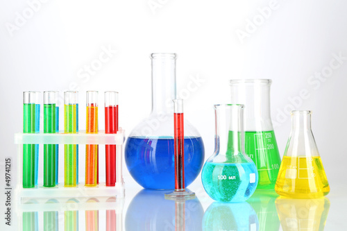 Test tubes with colorful liquids isolated on white