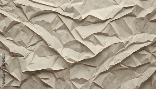 Texture de papier froissé et plissé blanc, effet poster collé, fond minimaliste réaliste.