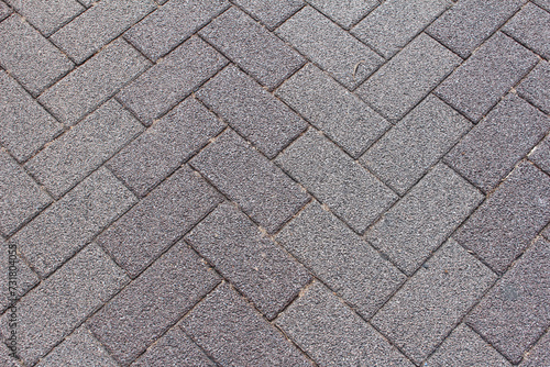 Texture of square cobblestone. Pattern of gray sidewalk tiles in the street. Gray square cobblestones close up.