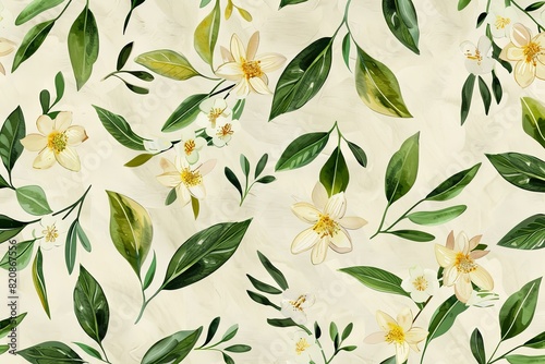Textured background featuring florals and green leaves in a seamless, repeated pattern