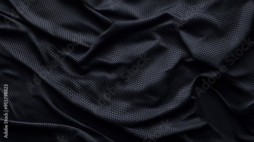 Textured black mesh fabric draped elegantly on a flat surface under soft lighting