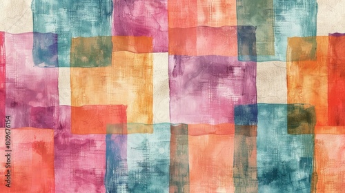 Textured Checked Background with a Watercolor Dyed Canvas Effect Seamless Pattern