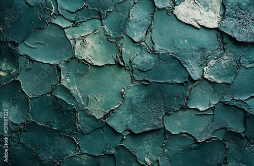 Textured natural wall with cracked paint in dark green and blue tones showcasing rustic beauty and depth : Generative AI