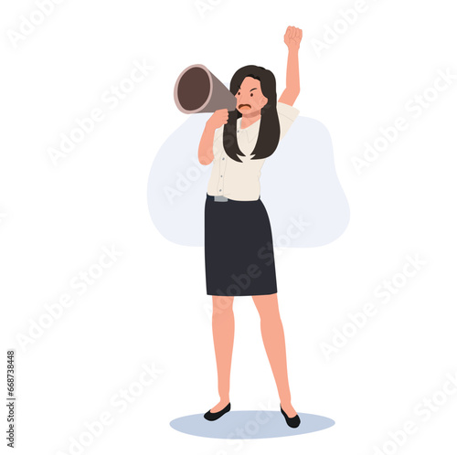 Thai University Student in Uniform with Megaphone. University Student in Uniform Shouting with Megaphone