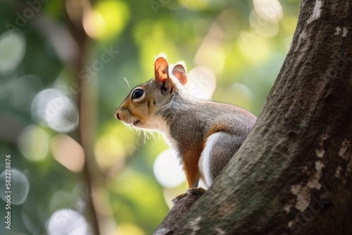 Thailand's Autumn Park with Squirrel on a Tree. Generative AI
