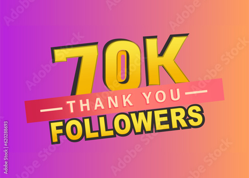 Thank you 70k followers banner, Thanks followers congratulation card, Vector illustration, gradient background, like, subscribers, text, follow, vector, blog, post, thumbnail