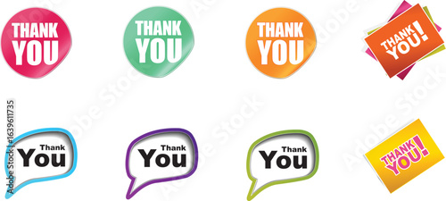 Thank You stickers vector collection featuring a variety of colorful and creative designs for expressing gratitude.