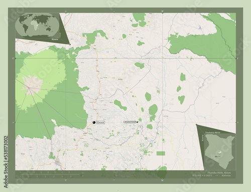 Tharaka-Nithi, Kenya. OSM. Labelled points of cities