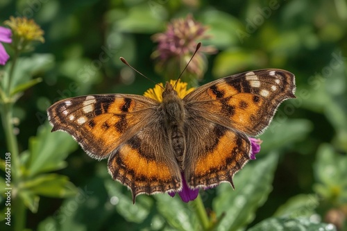 The Admiral butterfly (Vanessa atalanta) is a diurnal insect from the Nymphalidae family that feeds on flower nectar.