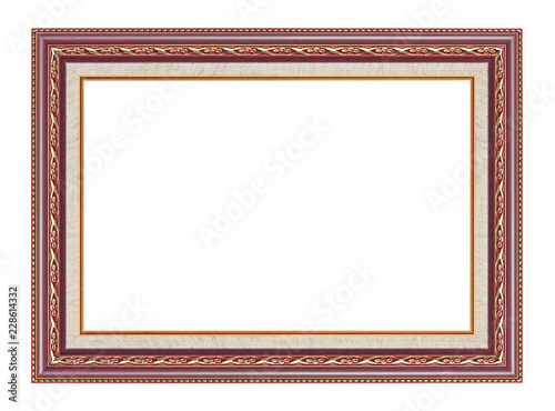 The antique gold frame on the white background
