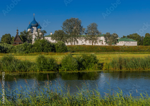 The architecture of the city of Suzdal in summer in sunny weather. Russian village.