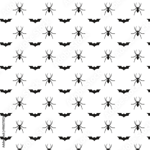 The attractive repeated pattern design of bat and black spider is suitable for printing on fabric and clothing, wall paper, gift paper, nylon, etc.