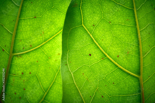 The back of a tree leaf in the sun