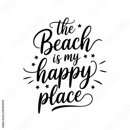 The beach is my happy place. Summer Vector Design Isolated on White Background