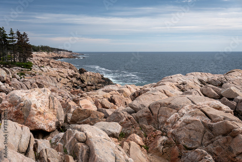 The Cabot Trail, a scenic highway on Cape Breton Island in Nova Scotia, Canada. Rugged coastline in the Cape Breton Highlands and the Cape Breton Highlands National Park.