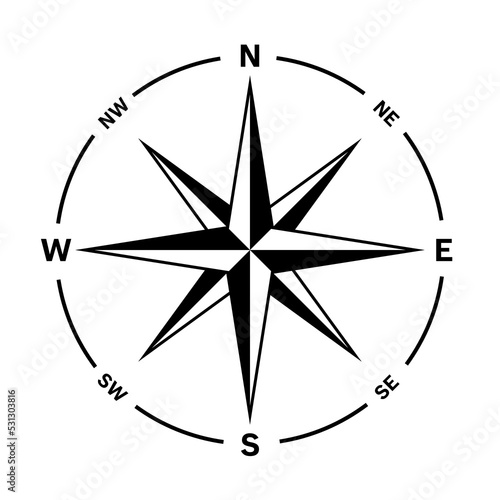 The cardinal direction (horizon side) icon. Symbol of travel and direction in navigation. The subject of orientation on the terrain or map. Isolated vector illustration on white background.