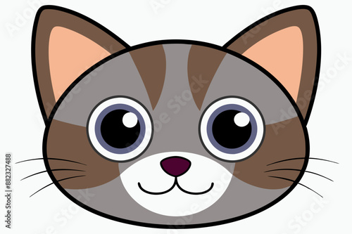 The cats face is the primary focus, with a large, rounded head and prominent, exaggerated features.