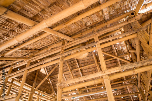 The ceiling is made of wood