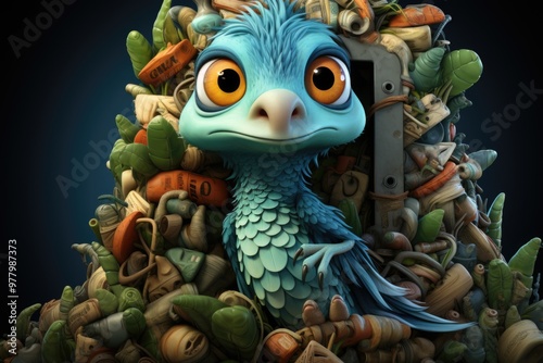 The close up of a cartoon animal alphabet with a large letter d Generative, generative IA