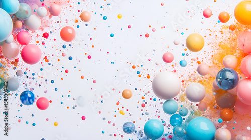 The colors include reds, oranges, yellows, greens, blues, and purples, creating a sense of liveliness and movement as if they are floating or scattering across the frame