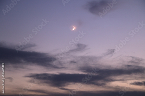 the colors of the evening sky with the half moon illuminated
