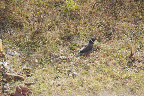 The Common Myna (Acridotheres tristis) is a bold, brown bird with yellow eye patches, known for its adaptability, vocal mimicry, omnivorous diet, and urban presence.