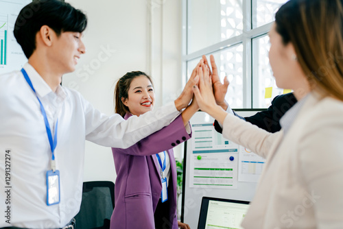 The concept of cooperation and teamwork of co-workers coworkers holding hands Successful agreement after excellent meeting The scene is professional and friendly.