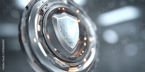 The concept of data protection. A shield with a keyhole.