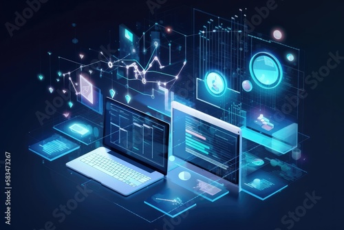 The concept of data research, data mining, business analytics, querying, analysis, and visualization of complex information is illustrated through big data flow technology. Generative AI