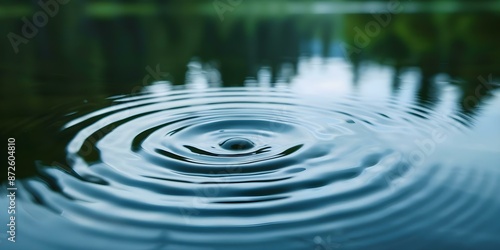 The Creation of Ripples by a Water Droplet in a Tranquil Pond. Concept Nature Photography, Water Reflections, Tranquil Scenes