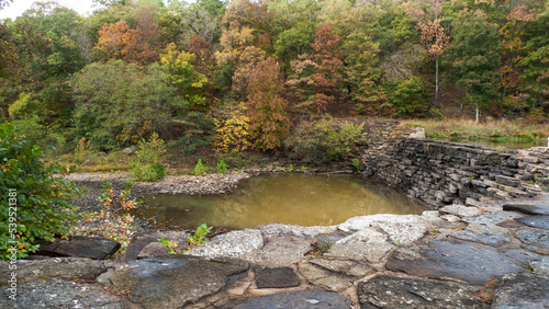 The Dam at Devils Den State Park with autumn scenery