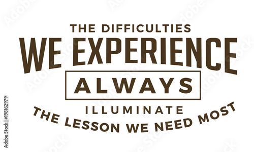 The difficulties we experience Always illuminate the lessons we need most.