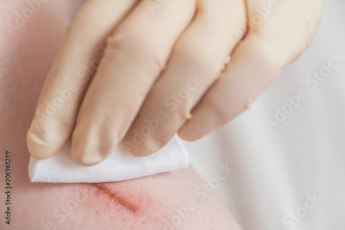 The doctor examines the healing wound