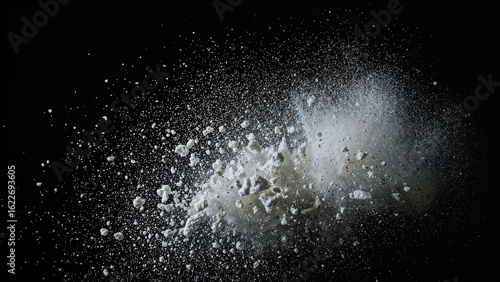 The dramatic slow release of white dust on a dark canvas