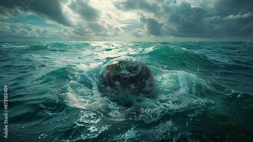 the earth in the sea,commercial photography, real photos, high-definition shot with a Sony camera,rich details, 8K